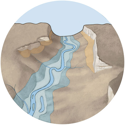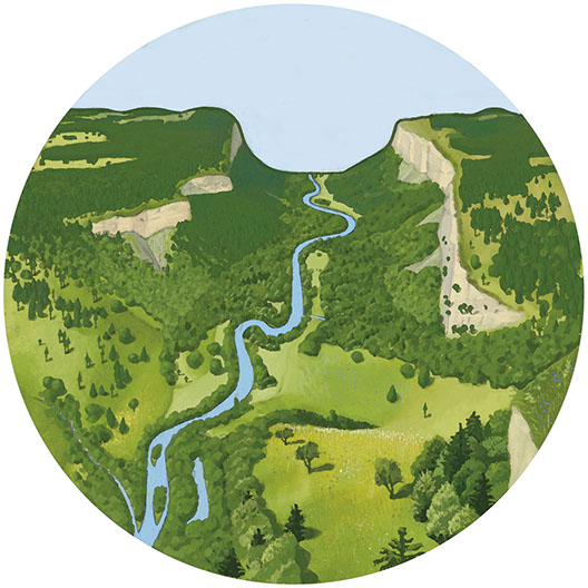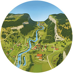 Illustration pour un panneau didactique présentant les caractéristiques géologiques, écologiques et paysagères de la vallée du Doubs.