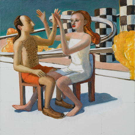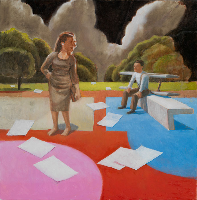 Femme, homme, feuilles, 2015, 100 x 100 cm